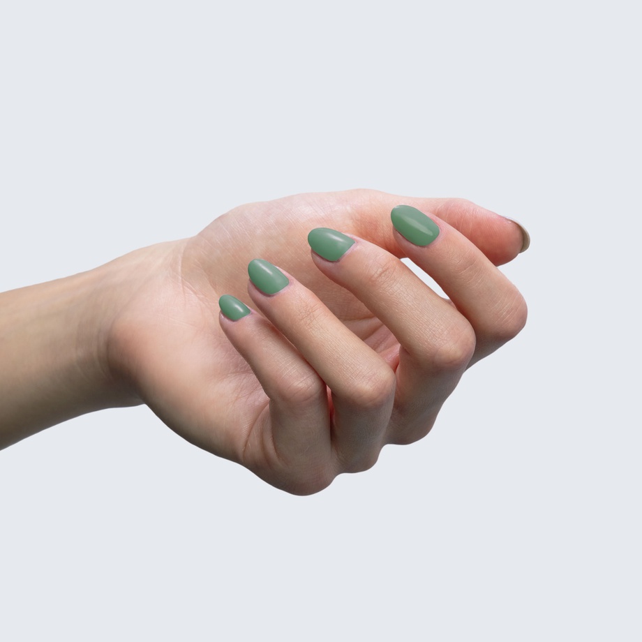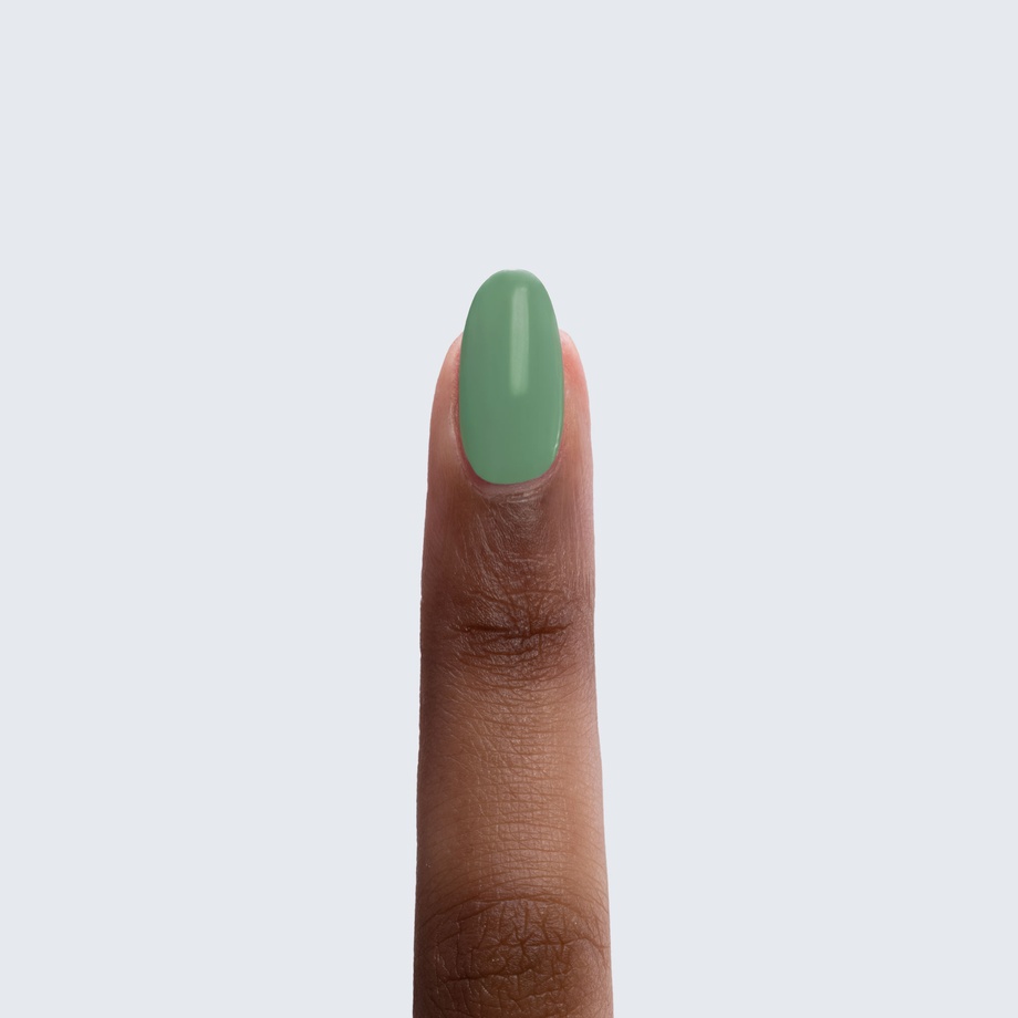 Mint green. Muted. Medium. Opaque. Warm undertone.