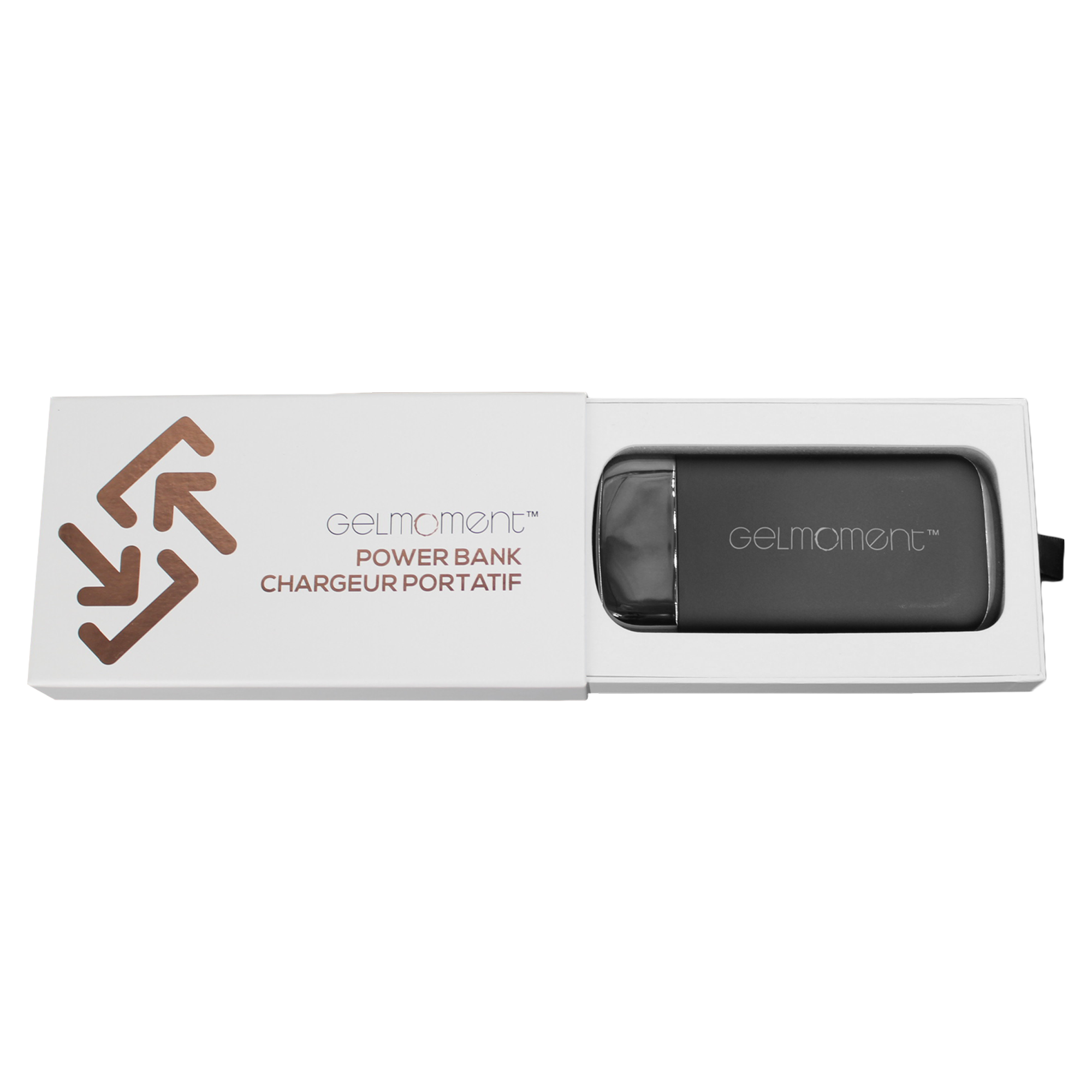 Available with either pink or gold accents, this GelMoment branded Power Bank will be an eye-catching conversation starter wherever you go. Perfectly sized to fit into your Beauty Bag, purse, or the pocket of your favourite jeans, this Power Bank packs a punch!