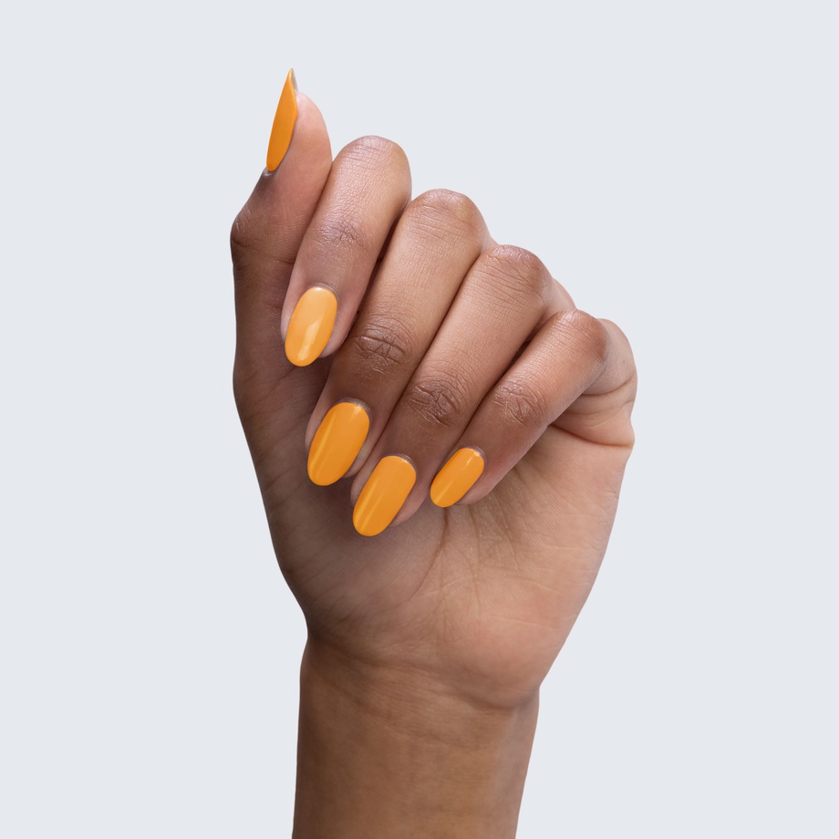 This beautifully bright orange-yellow polish glows like golden hour.
